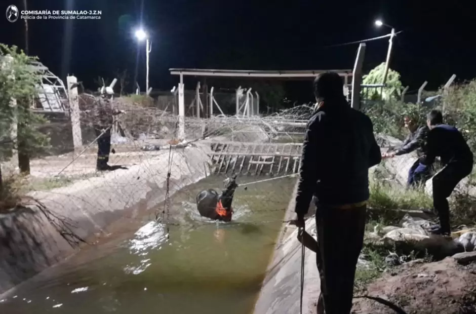 Hoy, a las 02:30, numerarios de la Comisaría de Sumalao llegaron hasta un canal de riego existente en el barrio Los Plateados, de esa localidad del departamento Valle Viejo, donde un animal equino habría caído al agua.