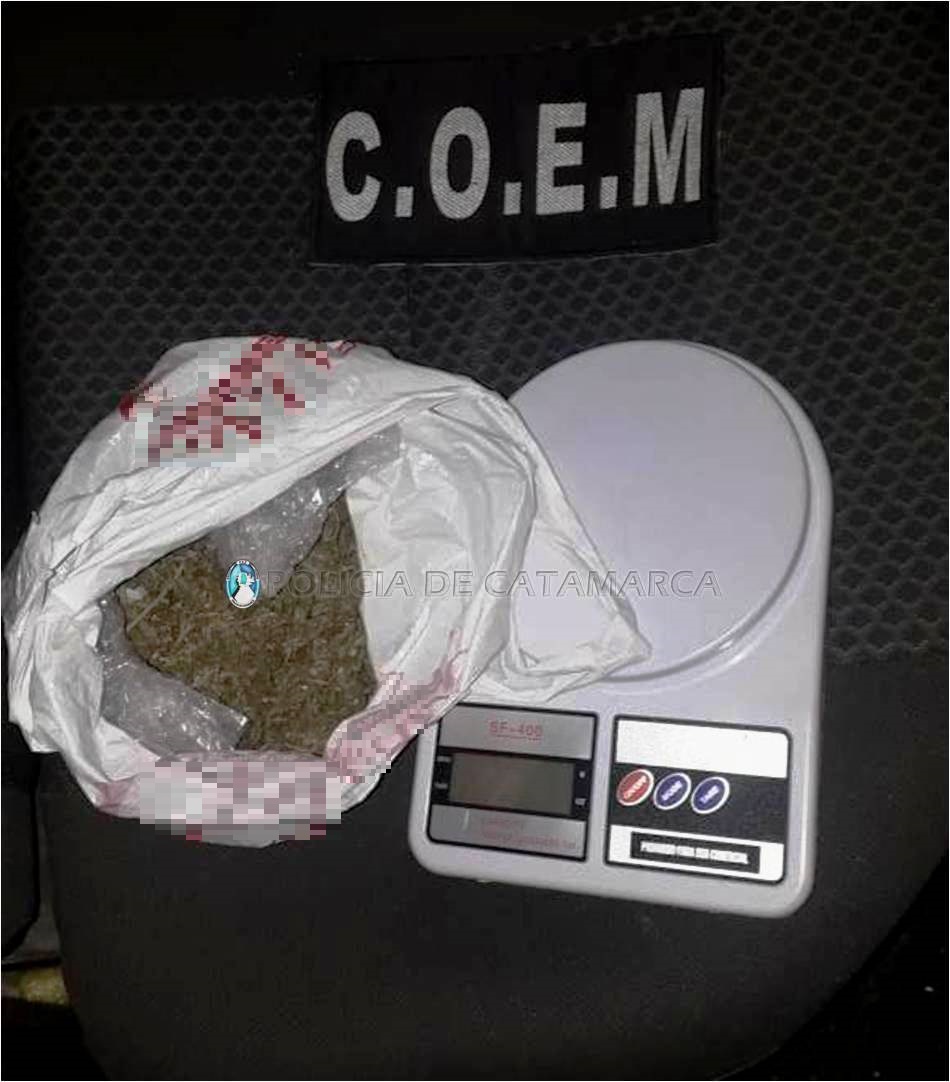 Al inspeccionar el rodado, los policías observaron que llevaban una bolsa de plástico que contenía en su interior una sustancia herbácea, una balanza digital blanca, dinero en efectivo y cuatro teléfonos celulares de distintas marcas y modelos, por lo que dieron intervención a sus pares de la Dirección Drogas Peligrosas, quienes tras realizar trabajos de su especialidad determinaron que se trataría de 30 gramos de marihuana.