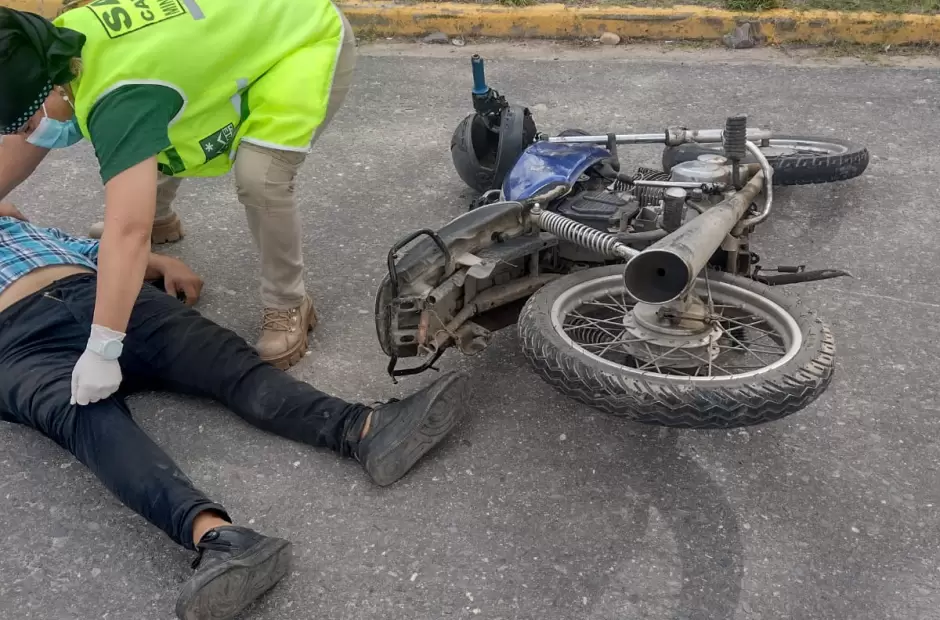 El domingo a la noche, un hombre de 36 años ingresó al Hospital San Juan Bautista, trasladado en una ambulancia del SAME, producto de haber protagonizado la motocicleta marca Motomel 150cc que conducía un violento derrape.