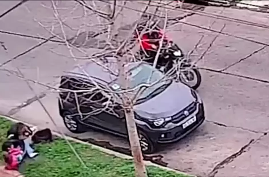 En paralelo, las tres víctimas iban dando vueltas agachadas alrededor del auto para tratar de no quedar en la mira del delincuente y que no pudiera dispararles. Después de disparar al auto, rápidamente el hombre se subió a la moto y escapó.