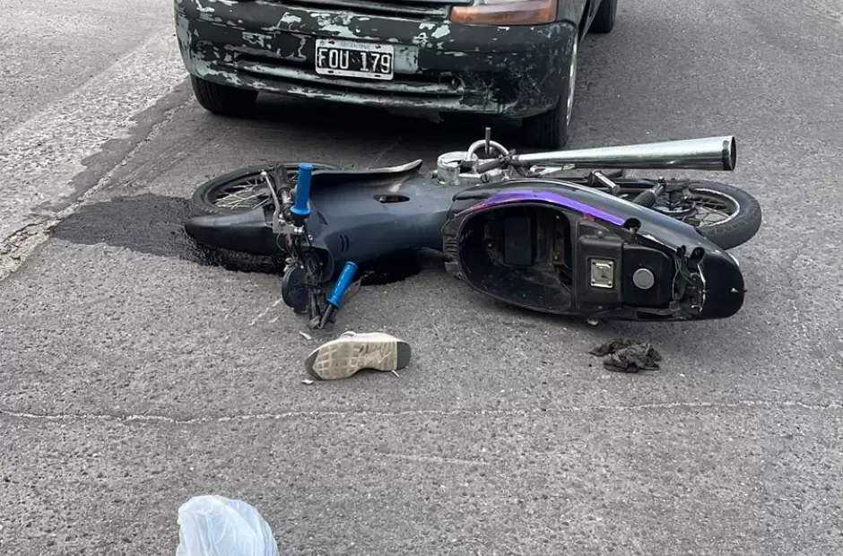 Una vez que arribaron a la intersección mencionada, constataron que había una motocicleta motomel Bliz 110 tendida sobre la cinta asfáltica. Según el testimonio de los conductores involucrados en el siniestro, la motocicleta, al mando de Verónica Carrizo (33), por causas a determinar impactó con la camioneta Renault Kangoo, al mando de Luis Gutiérrez (57).