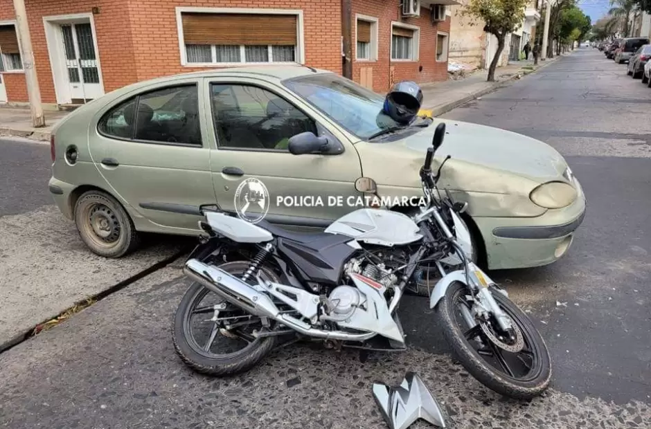 A las 11:05 de la mañana de ayer, por requerimiento del Sistema de Atención de Emergencias (SAE) 911, efectivos de la Comisaría Primera se hicieron presentes en la intersección de las calles Junín y Esquiú, donde se registró un siniestro vial. Alexis Nicolás Benítez Suarez (26), circulaba en una motocicleta Yamaha YBR 125 cc., dominio A137RCI, de color blanco, y por razones que se tratan de establecer colisionó con un automóvil Renault Megane verde, dominio DOS-642, al mando de Iris del Valle Aybar (33). Producto del siniestro, el conductor del rodado menor sufrió lesiones y fue asistido por facultativos médicos del SAME. Trabajaron en el lugar efectivos de la seccional mencionada y Sumariantes del Precinto Judicial N° 1, para labrar las actuaciones de rigor.