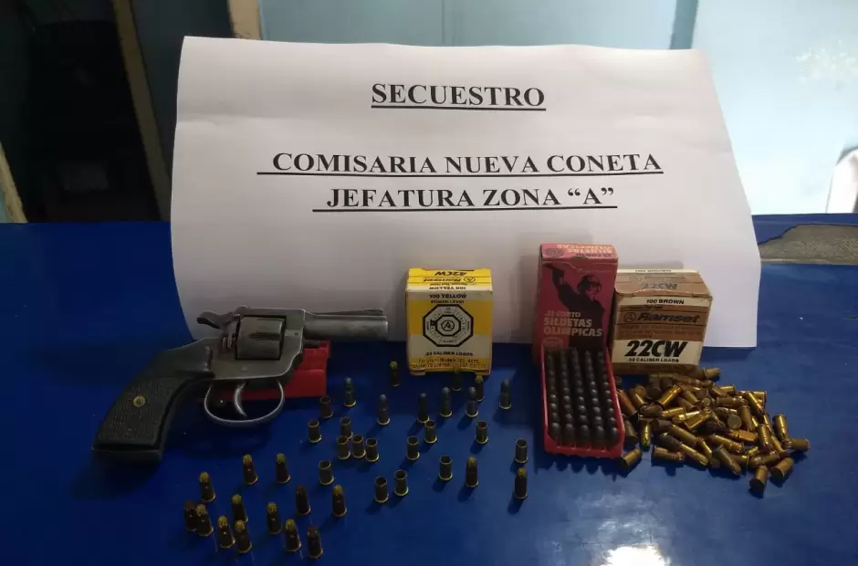 Ante esta declaración, efectivos policiales se acercaron hasta el hogar del sujeto alrededor de las 15:30 horas. Una vez allí, los policías le pidieron que hiciera entrega del arma y el hombre no ofreció resistencia, ni negó el hecho. Frente a la situación, simplemente, entregó su arma, un revolver calibre 22, con municiones normales y de fogueo.