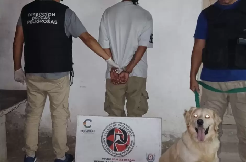 Un operativo de rutina contra el narcomenudeo terminó con la detención de un hombre y el secuestro de marihuana en el departamento Valle Viejo. El procedimiento tuvo lugar sobre la Ruta Nacional N° 38, a la altura de la localidad de El Portezuelo, donde efectivos de la División Canes Antinarcóticos, dependiente de la Dirección Drogas Peligrosas de la Policía de la Provincia, realizaban un control vehicular preventivo.
