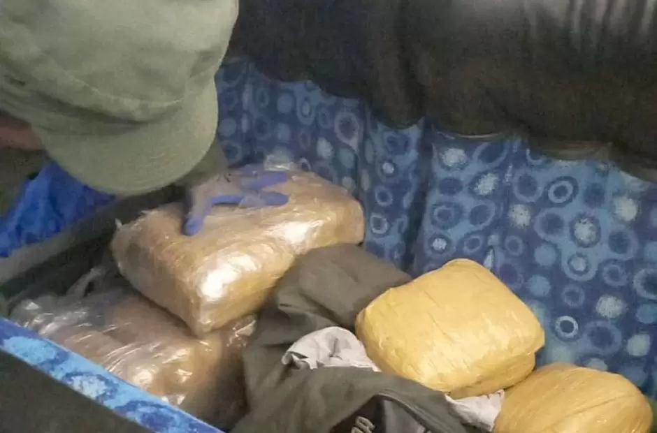 Durante la inspección exhaustiva realizada por los efectivos de la fuerza de seguridad, se descubrió un hallazgo impactante: dos mochilas ocultas bajo las butacas del vehículo de transporte contenían un total de 8 kilos y 600 gramos de marihuana.