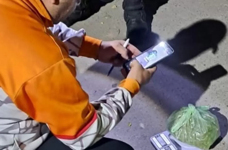 En ese momento, los policías solicitaron la presencia de sus pares de la Dirección Drogas Peligrosas, quienes llevaron a cabo la prueba de campo correspondiente que arrojó como resultado que se trataría de 121 gramos de cogollos de marihuana.