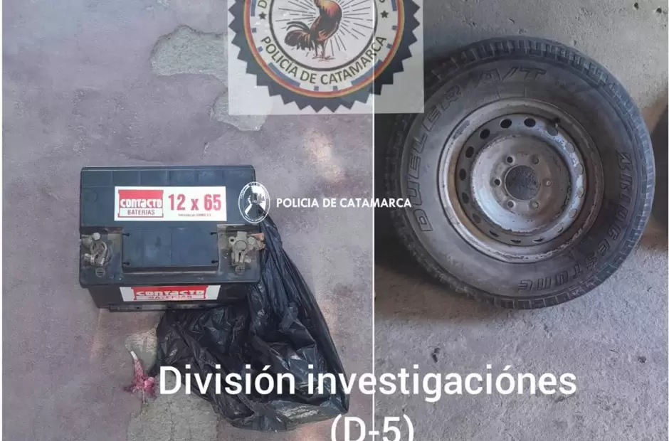 En dichos lugares, los investigadores lograron recuperar una batería marca Contacto Baterías, que quedó en calidad de secuestro, al igual que una rueda completa para camioneta marca Bridgestone, rodado Nº 14, en virtud de lo cual todo lo incautado fue puesto a disposición de la Justicia interviniente, desde donde se indicaron las medidas a cumplimentar.