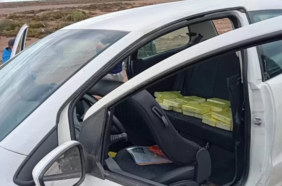 Al inspeccionar el rodado, el personal interviniente secuestró veintisiete (27) panes compactados, envueltos en cinta de embalar de color amarillo, con el sello en bajo relieve con la imagen de un "delfín", que al ser sometidos a la prueba de campo correspondiente, arrojó como resultado que se trataría de unos 28 Kg., de Cocaína, como así también incautó dos (02) celulares, dos (02) billeteras, un (01) bolso, una (01) mochila y el vehículo mencionado.