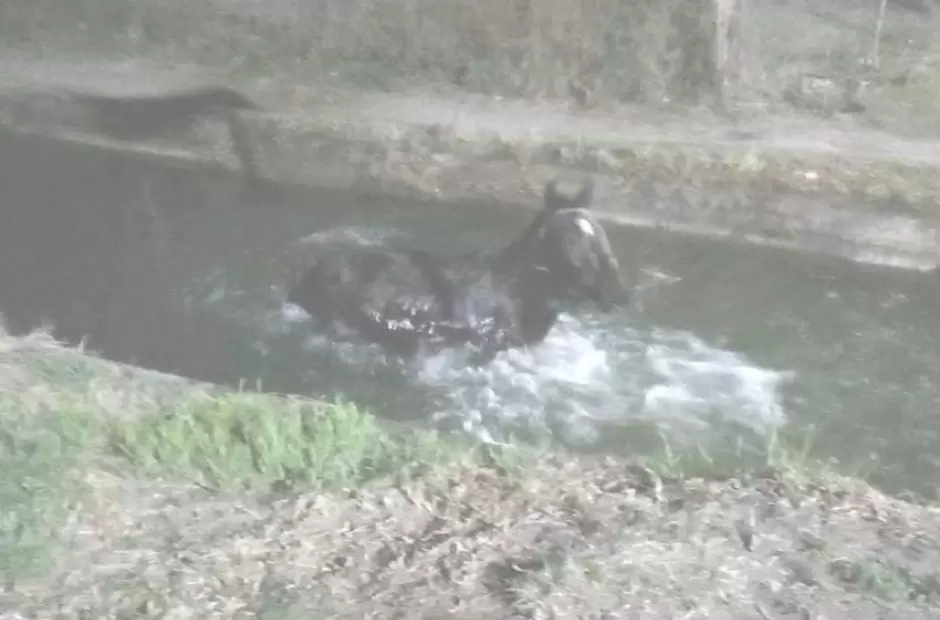 En los primeros minutos de la mañana de hoy, a las 06:00, alertados por Operadores del 905, numerarios de la Comisaría de Santa Rosa se hicieron presentes en un canal de riego ubicado en inmediaciones a la pileta municipal de esa localidad del Departamento Valle Viejo, donde observaron que un equino se habría caído al interior del canal y estaría siendo arrastrado por el cauce del mismo, por lo que de inmediato y con la colaboración de Bomberos Voluntarios de Valle Viejo, lograron rescatar al animal, que se encuentra en buen estado.