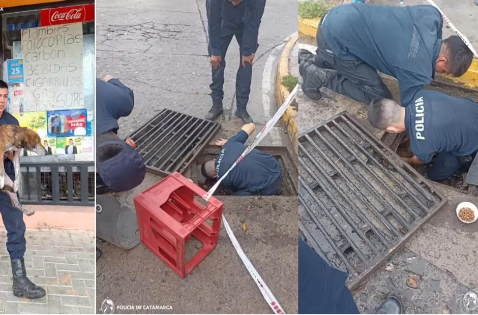 Este viernes las 15:20, personal de la Comisaría Cuarta de Catamarca fue alertado a través del sistema SAE-911 sobre un perro atrapado en una alcantarilla en la avenida Bartolomé de Castro, cerca de la rotonda que conecta con la avenida Mariano Moreno.