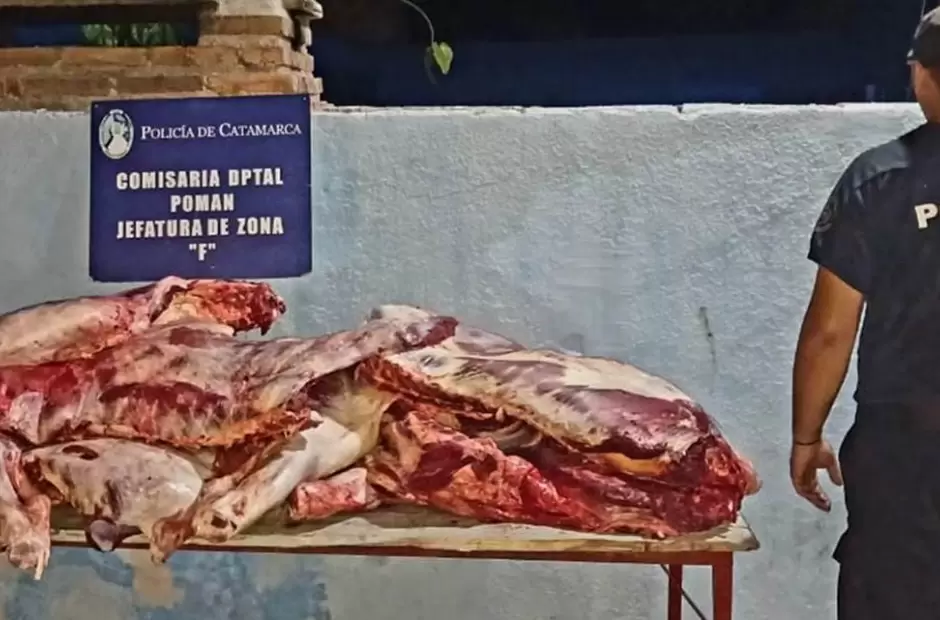 Durante la jornada del martes, efectivos policiales secuestraron carne vacuna tras un operativo de control en Pomán.