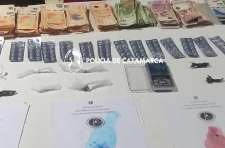 En dicho lugar, los policías encontraron envoltorios de plástico con sustancias, que al ser sometidos a la prueba de campo correspondiente, arrojó como resultado que se trataría de marihuana y cocaína, que quedaron en calidad de secuestro, al igual que 190 pastillas de Midazolam, de 15 mg., una balanza digital tipo gramera y la suma de 383.290 pesos en efectivo.