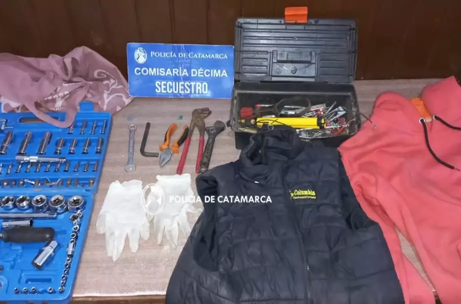En el lugar, se procedió al secuestro de una bolsa que en su interior contenía una (01) caja de color azul con sus respectivos tubos, una (01) caja con herramientas varias, guantes de látex y prendas de vestir.
