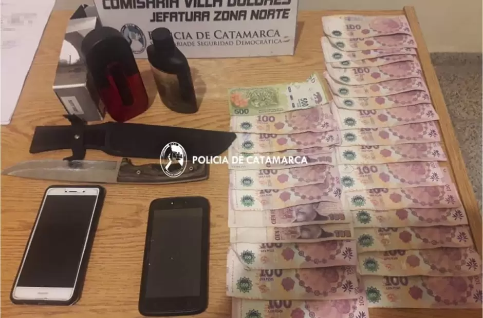 Tras averiguaciones practicadas, los policías lograron establecer que los elementos y el dinero, habían sido sustraídos del interior de un domicilio ubicado en la calle Tulio Canul S/N° del barrio El Hueco, Departamento Fray Mamerto Esquiú, propiedad de una mujer de 42 años de edad, por lo que fue trasladado junto a los elementos y el dinero a la Comisaría de Villa Dolores, que por jurisdicción corresponde, donde quedó alojado a disposición de la Fiscalía de Instrucción N° 5, desde donde se ordenaron las medidas a seguir, en tanto que se invitó a la damnificada a radicar la denuncia penal correspondiente en la Unidad Judicial N° 11.