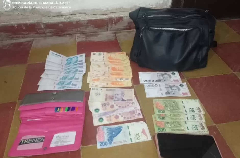 En el interior de la misma habia una billetera, tarjetas de crédito, documentos, un teléfono celular y la suma de ochenta y siete mil pesos ($87.000) en efectivo, que quedaron en calidad de secuestro.
