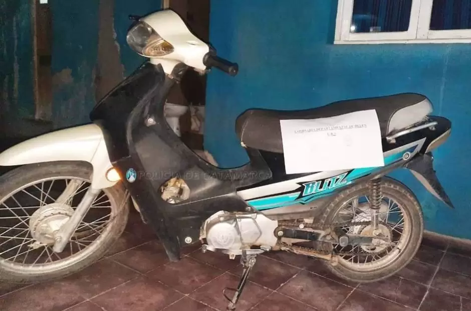 Conforme la denuncia penal radicada en la dependencia policial por un hombre de 30 años, quien manifestó que personas desconocidas le habrían sustraído una motocicleta Motomel B 110 cc., y tras una ardua tarea investigativa, personal de la Comisaría Departamental Belén se trasladó hasta el barrio 120 Viviendas de la ciudad de Belén, departamento homónimo, donde aprehendió a un hombre de apellido Ríos, de 41 años, como así también se logró recuperar el rodado sustraído, que fue incautado.
