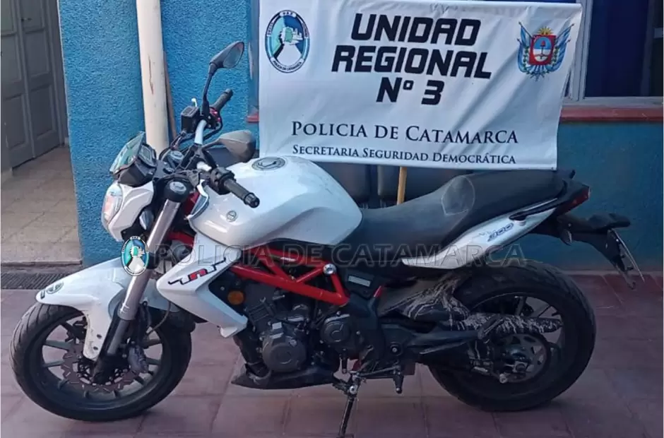 A raíz de una denuncia penal radicada en la seccional, en la que un hombre manifestó que personas desconocidas le habrían sustraído una motocicleta Benelli TNT 300 cc., de color blanco, del interior de un local comercial ubicado en la esquina de avenida Virgen de Belén y Belgrano, para luego darse a la fuga, tras averiguaciones practicadas, a las 22:40 de anoche, personal de la comisaría departamental de Belén se hizo presente en la Cuesta de Belén, por sobre Ruta Nacional N° 40, a la altura de Reserva Natural Los Suris.