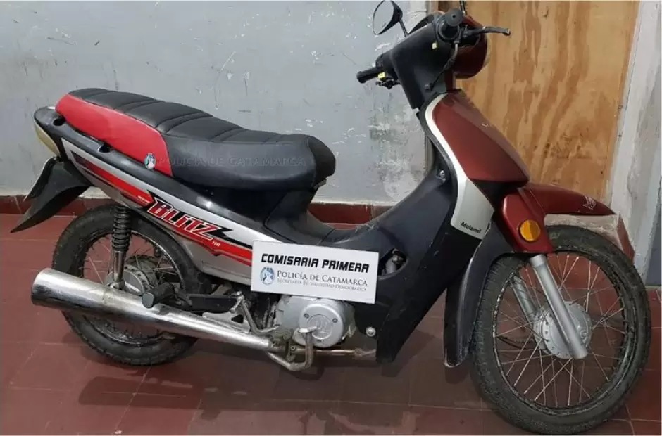 En la madrugada de hoy, a las 04:20, mientras personal de la Comisaría Primera realizaba recorridos de prevención por la intersección de las calles Vicario Segura y La Rioja, procedió al secuestro de una motocicleta Motomel Blitz 110 cc., dominio A013QBR, de colores gris y rojo, que estaba abandonada en el lugar.