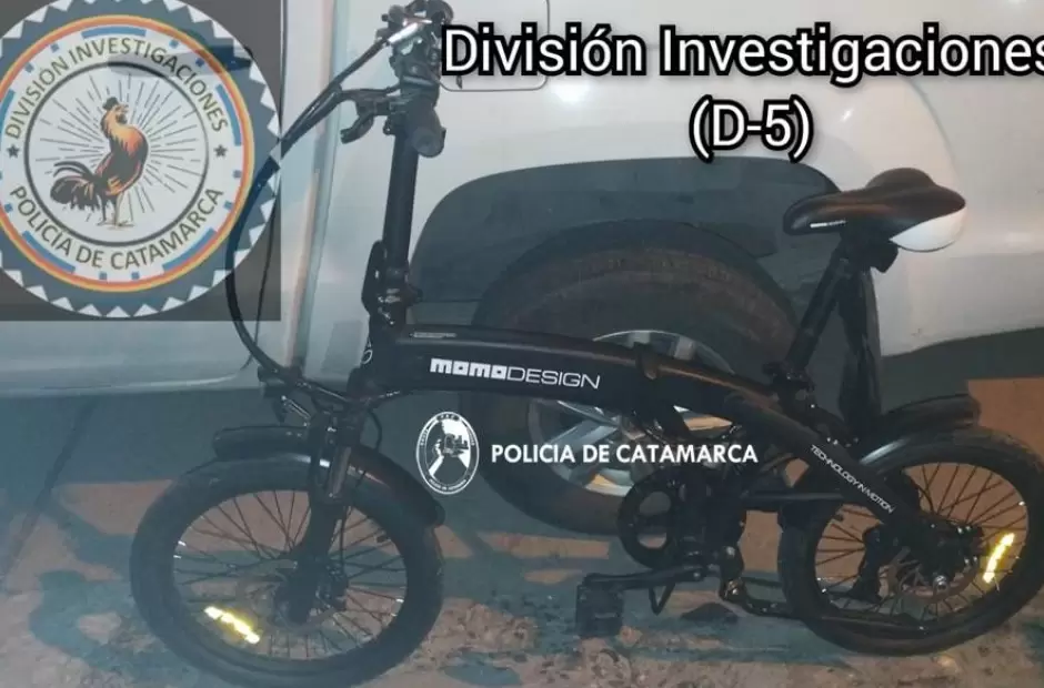 El vehículo en cuestión es una bicicleta eléctrica, marca Momodesign Ibiza 20, de color negro, la cual y tras averiguaciones practicadas por el personal de la División Investigaciones de la Policía de la Provincia, conjuntamente con Sumariantes del Precinto Judicial mencionado, fue ubicado gracias a un registro domiciliario en una vivienda ubicada en la Peatonal N° 21 del B° Libertador II .