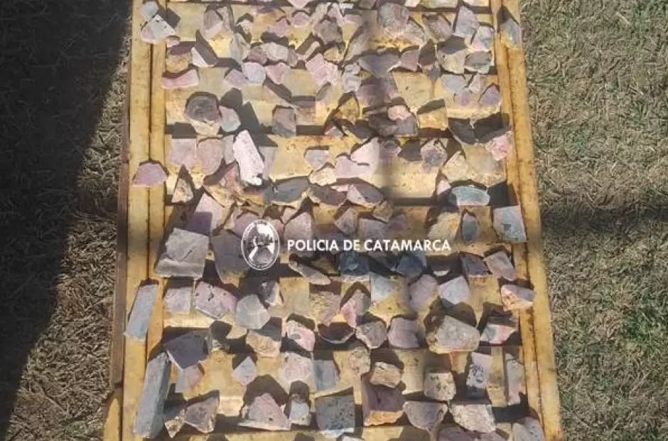 Los efectivos encontraron un aproximado de 148 kilogramos de pequeñas piedras semipreciosas rodocrosita, y seis piedras de tamaño mediano, en dos domicilios del barrio Cooperativa.