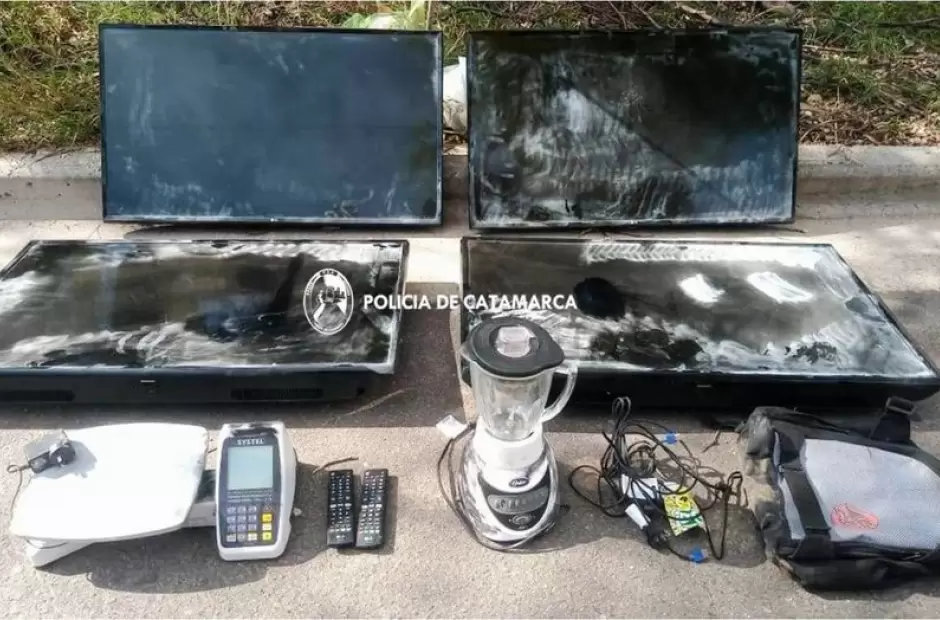 Tras una ardua tarea investigativa, personal de la División Investigaciones de la Policía de la Provincia realizó rastrillajes en un descampado ubicado la zona alta de la Capital y, en inmediaciones a la esquina de calles Arrayanes y Las Tuscas, logró observar entre las malezas los televisores cubiertos con arbustos, como así también a los pocos metros una mochila de color negro, y demás elementos que habrían sido sustraídos, que quedaron en calidad de secuestro a disposición de la Fiscalía de Instrucción N° 4, desde donde se impartieron las directivas a seguir