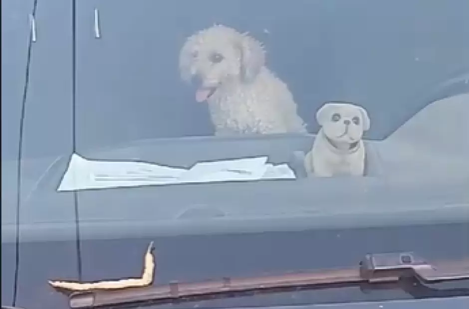 Allí estaba estacionada una camioneta marca Amarok de color negro, en cuyo interior podía observarse a un perrito raza Caniche Toy color blanco, el que se mostraba con graves signos de falta de oxígeno.