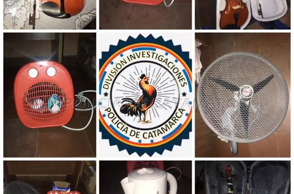 De las tareas investigativas, el personal de la División Investigaciones materializó registros domiciliarios en viviendas ubicadas en las calles Congresal Centeno al 600, propiedad de la familia Heredia; Pedro Goyena al 1.100, donde reside una familia de apellido Camaño; Juan de Aquino al 200 del barrio Villa Parque Norte, propiedad de la familia Brizuela, y Congresal Centeno al 600, donde vive la familia de apellido Aparicio Pons. En dichos inmuebles, lograron recuperar tres violines, dos caloventores, un ventilador y una pava eléctrica, que quedaron en calidad de secuestro, en tanto que los moradores fueron supeditados a la prosecución de la causa.