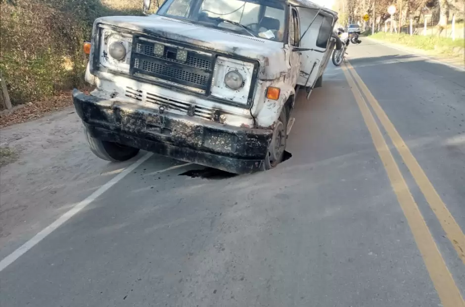 El conductor, identificado como Luis Chazarreta, de 52 años, resultó ileso y el camión terminó con las ruedas del lateral izquierdo en dos pozos, sin poder salir.