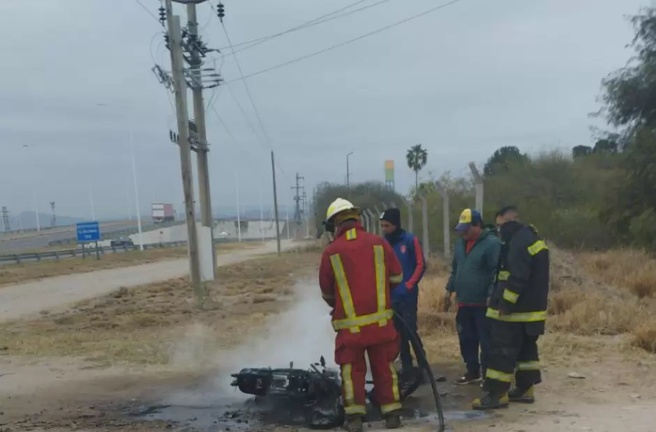 En el lugar, luego de ser ayudado por circunstanciales transeúntes, Juan Marcelo Herrera, el conductor del rodado menor, fue asistido por los bomberos, quienes sofocaron las llamas que habían consumido gran parte del vehículo marca Cerro 110 cc.