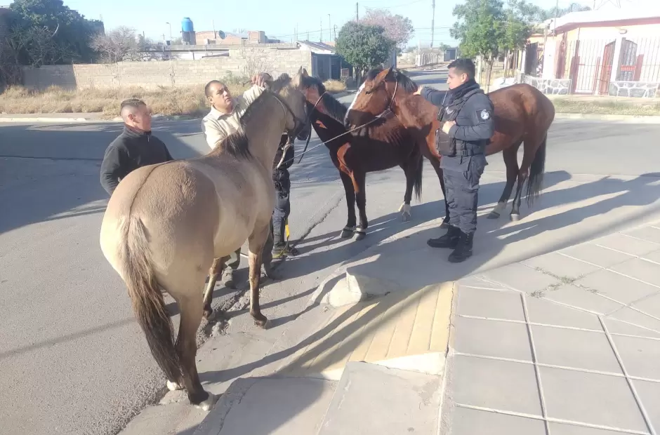 Este domingo, personal policial procedieron en colaboración con la División Montada al secuestro de animales que se encontraban sueltos en plena vía pública.
