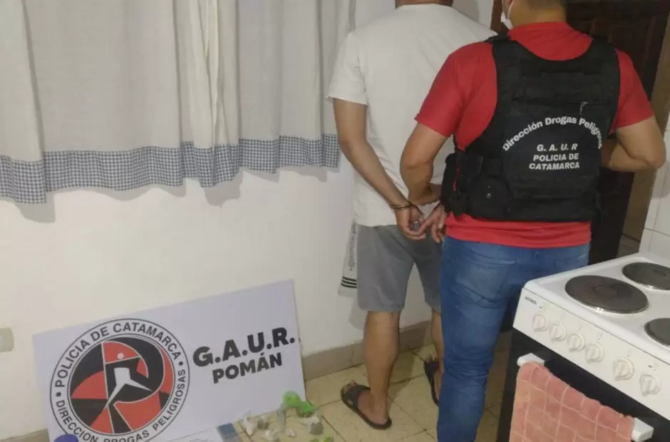 En la noche de ayer, a las 20:00, tras llevar a cabo tareas investigativas y bajo las directivas del Juzgado Federal, efectivos del Grupo Antinarcóticos de Unidades Regionales (GAUR-Pomán), con colaboración de sus pares de la División Canes Antinarcóticos y de los Grupos (GAUR-Andalgalá y Capayán), materializaron un allanamiento en un inmueble ubicado en la localidad de Pomán, departamento homónimo.