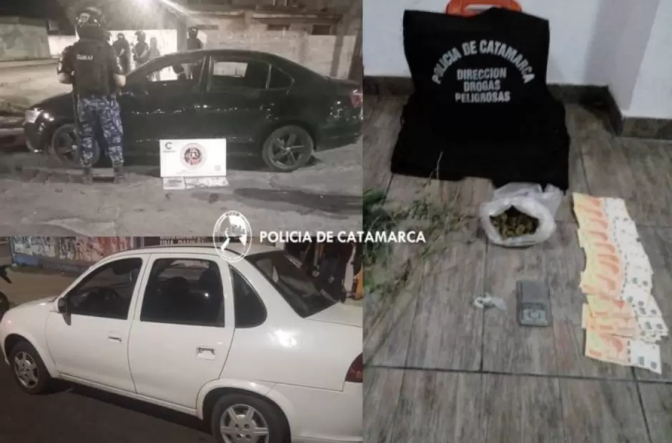 Al finalizar con las medidas Judiciales, los policías secuestraron Marihuana y Cocaína, varias semillas y plantines de la variedad Cannabis Sativa, una (01) balanza tipo gramera, cuatro (04) teléfonos celulares, la suma de ciento ochenta y dos mil doscientos noventa pesos ($182.290) en efectivo, el rodado mencionado y un Chevrolet Corsa Classic blanco, como así también procedieron a la detención de dos masculinos mayores de edad, quienes quedaron alojados a disposición de la Justicia interviniente.