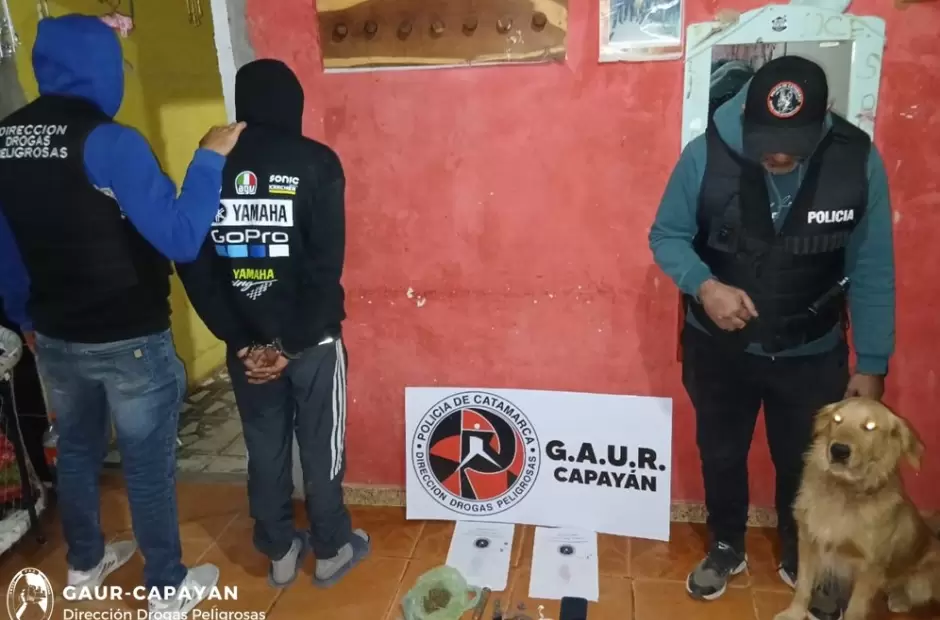 En la noche de ayer, a las 21:55, fruto de una ardua tarea investigativa por una supuesta infracción a la Ley Nacional de Estupefacientes N° 23.737, con conocimiento e intervención del Juzgado Federal, efectivos del Grupo Antinarcóticos de Unidades Regionales (GAUR-Capayán), dependientes de la Dirección Drogas Peligrosas de la Policía de la Provincia, materializaron un allanamiento en un domicilio del barrio España, de la localidad de Huillapima, departamento Capayán.