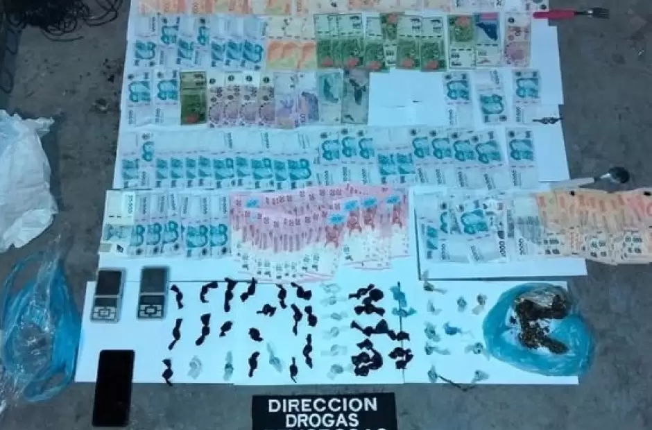 Tras irrumpir en los domicilios, los investigadores secuestraron cuarenta y ocho (48) envoltorios que contenían Marihuana, tres (03) trozos compactados con la misma sustancia y envoltorios de nylon conteniendo Cocaína respectivamente, como así también dos envoltorios con semillas de la variedad cannabis sativa, un (1) teléfono celular, dos (02) balanzas digitales y la suma de quinientos ochenta mil cuatrocientos ochenta pesos ($580.480) en efectivo.