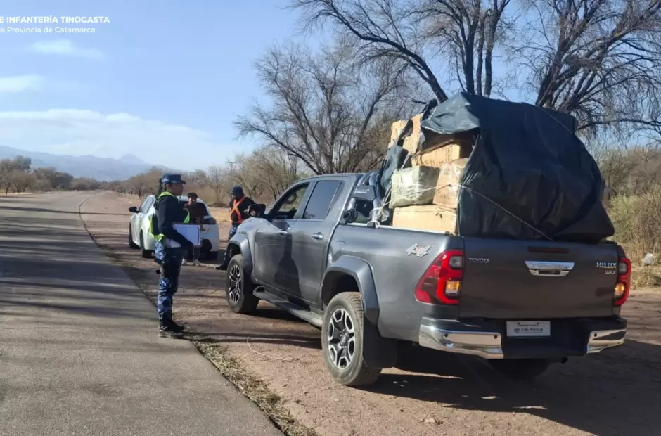 Mientras numerarios policiales realizaban operativos en un puesto de control ubicado en la Ruta Provincial N° 3, a la altura del ingreso a la ciudad de Tinogasta, departamento homónimo, controlaron un automóvil Peugeot 208, de color blanco y una camioneta Toyota Hilux gris, al mando de dos sujetos de 21 y 37 años de edad.