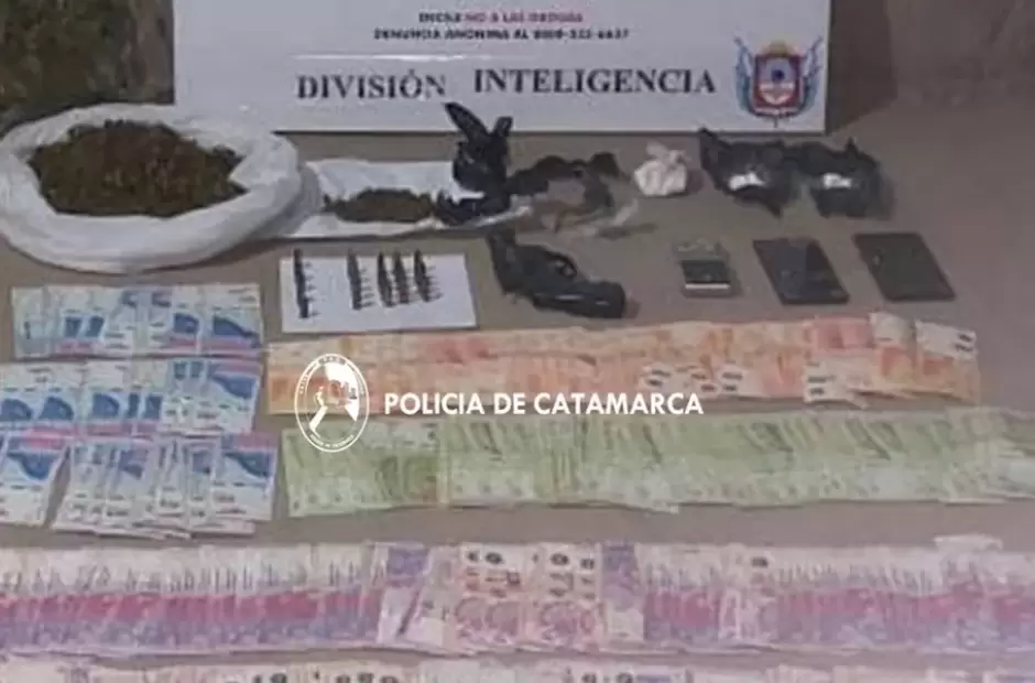 Durante el procedimiento se secuestró 56 gramos de cocaína, 577 gramos marihuana, 4 teléfonos celulares, 270.000 pesos, un revolver calibre 32 corto y 20 municiones del mismo calibre. Por este hecho quedó detenido un masculino mayor de edad de apellido Moyano.