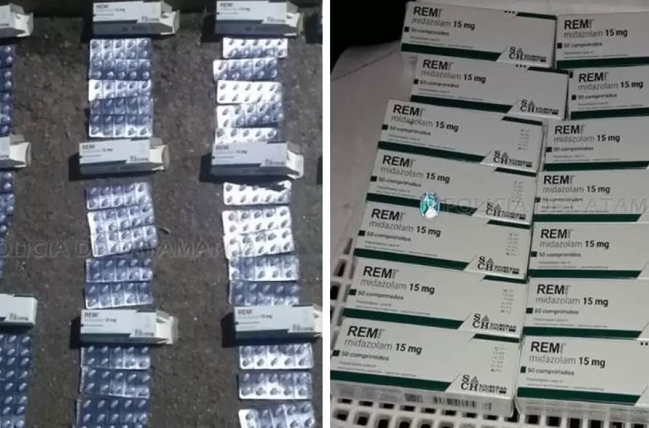 Al inspeccionar el rodado, los policías constataron que llevaban una bolsa de nylon color negro, y al solicitarle que exhibiera lo que contenía en su interior, lograron observar que se trataría de 16 cajas de medicamentos, por lo que de inmediato dieron participación a la Dirección Drogas Peligrosas de la Policía, quienes, tras realizar tareas de su especialidad lograron determinar que se trataría de un fármaco midazolam de 15 mg x 50 comprimidos.