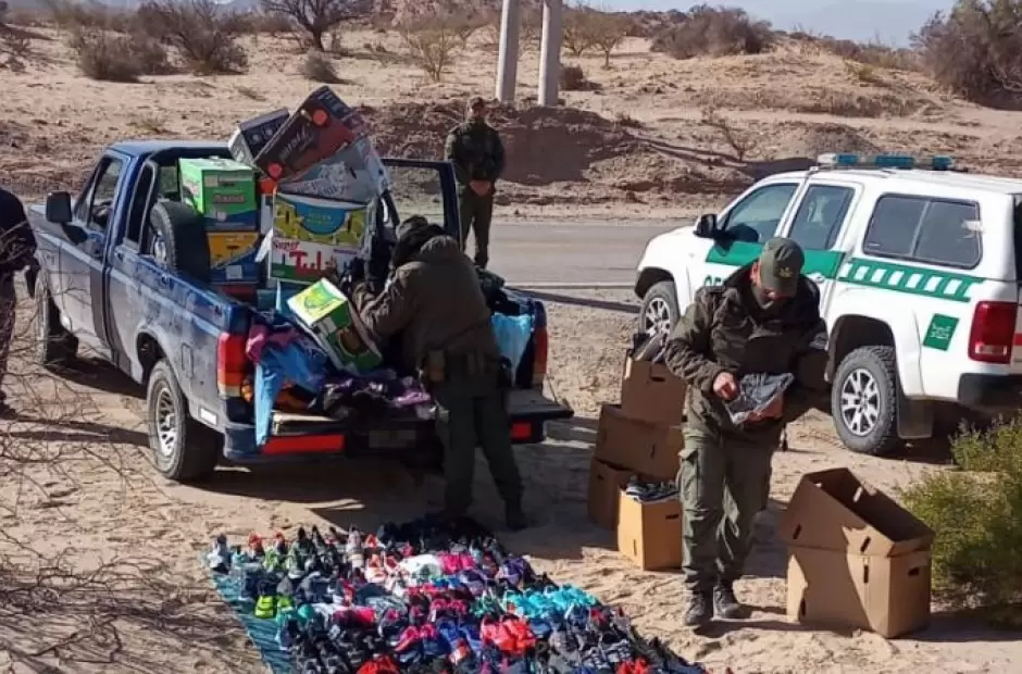 Del mismo modo, en otro procedimiento, sobre la Ruta Nacional N° 40 a la altura del paraje “Los Nacimientos”, una camioneta que efectuaba el itinerario Santa María - Hualfín, trasladaba 35 pares de zapatillas y mercadería por lo cual, en comunicación y orientación de integrantes de AFIP - DGA Tinogasta, los efectivos secuestraron los calzados.