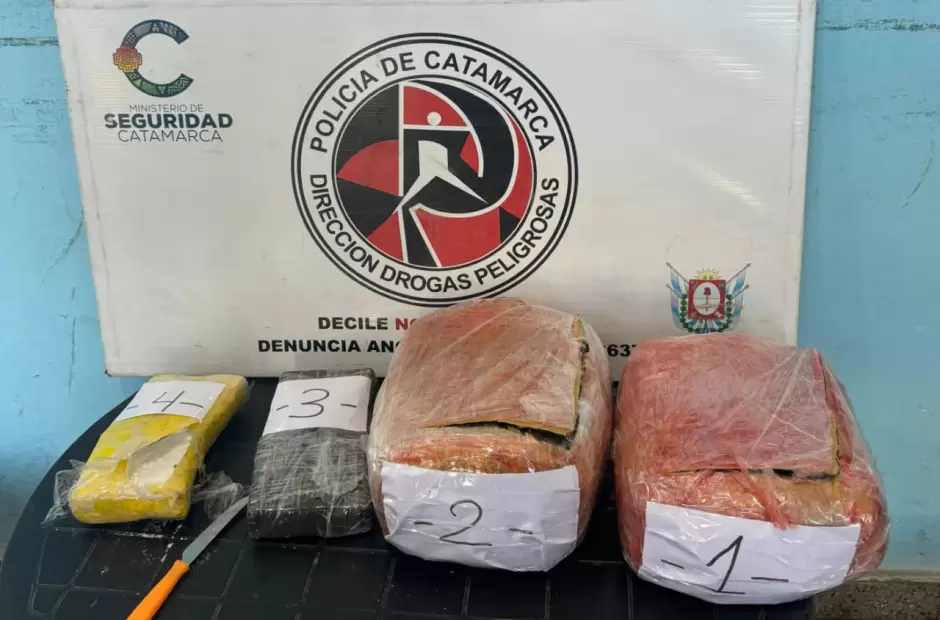 En el lugar, los policías interceptaron un ómnibus de la empresa Via Tac, proveniente de Salta, el cual luego de ser inspeccionado, la can "Laika" adiestrada para detectar estupefacientes, marcó una valija, propiedad de una joven de 24 de años de edad, que contenía en su interior cuatro paquetes con sustancias tipo polvo de color blanco y herbácea, que al ser sometidas a la prueba de campo correspondiente, arrojó como resultado que se tratarían de 4,280 kilos de marihuana y otros 2 kilos de cocaína, que quedaron en calidad de secuestro.