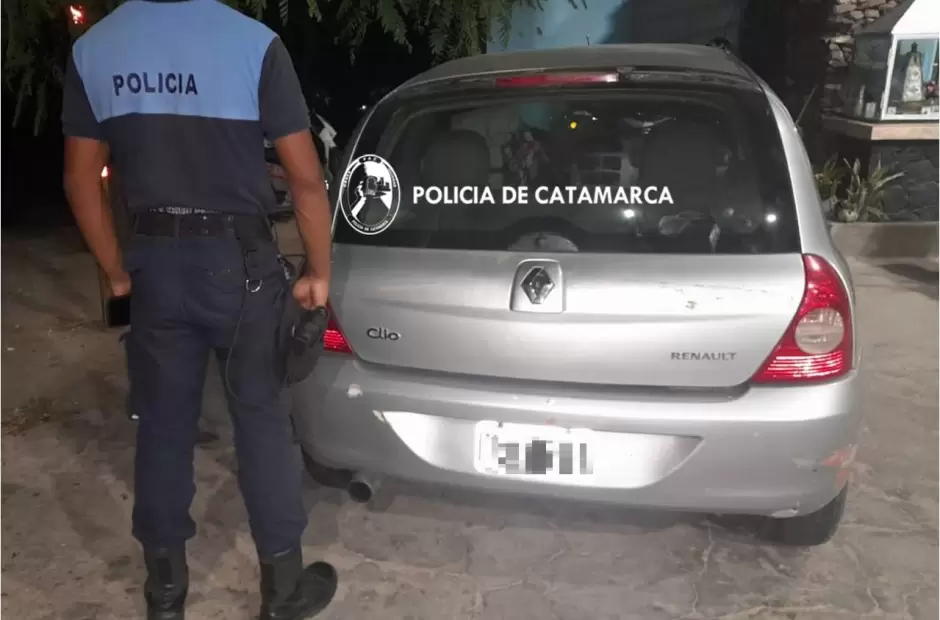 A las 23:30 de la noche del domingo, a requerimiento del Sistema de Atención de Emergencias (SAE) 911, en el puesto caminero de El Portezuelo, ubicado en la ruta nacional Nº 38, de la localidad de Santa Rosa, Valle Viejo, efectivos de la Dirección de Seguridad Vial de la Policía demoraron a un automóvil Renault Clío, de color gris, el cual contaría con impedimentos para circular.