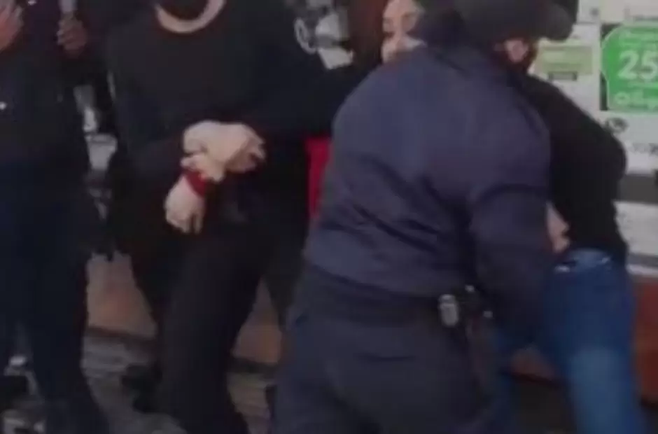 Tras ser arrestadas, las comerciantes fueron subidas al móvil policial porque se habían rehusado a identificarse ante la policía, que les había cuestionado por qué tiraron agua para lavar la vereda y lo que presuntamente había causado la caída de un motociclista en Sarmiento y Esquiú.