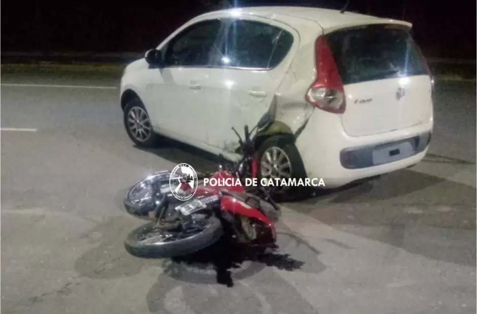 Al llegar al lugar, los policías constataron que un adolescente de 16 años circulaba en una motocicleta Honda CG Titán 150 cc., dominio 910JWU, en compañía de Walter Tomás Juárez (20), y por razones que se tratan de establecer colisionó con un automóvil Fiat Palio blanco, dominio OCU729, al mando de Walter Gabriel Páez (41).