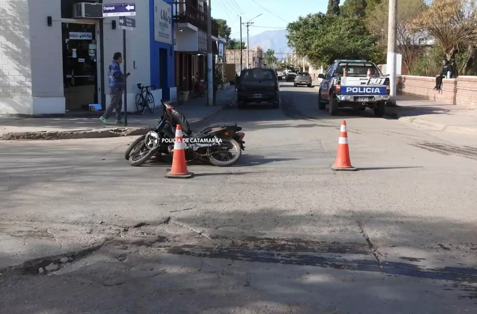 En la tarde de ayer, en la intersección de las calles Mariano Moreno y Copiapó, de la Ciudad de Tinogasta, departamento homónimo, se registró un siniestro vial.