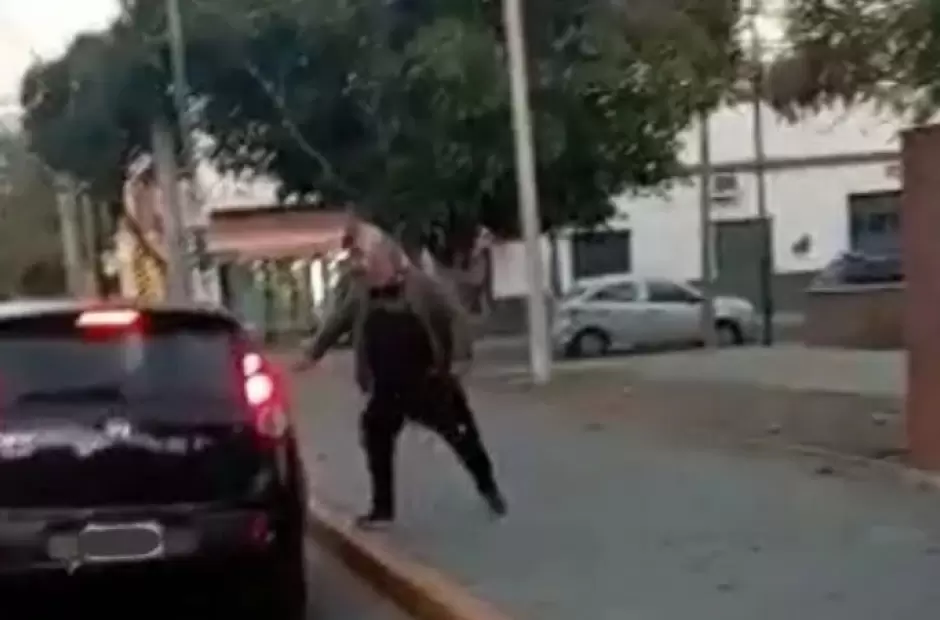 El hecho había ocurrido frente al Ministerio de Salud de la provincia ubicado en calle Chacabuco al 100. La repercusión de las imágenes fue tal que llegó a las autoridades quienes a raíz del hecho, decidieron suspender la licencia del hombre.