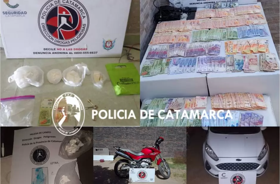 Tras irrumpir en dichos inmuebles, los policías procediendo al secuestro de 360 gramos de cocaína, un cigarrillo de armado de marihuana, diez comprimidos con la inscripción Alprazolam 2 mg., gran cantidad de semillas de similares características a las de Cannabis Sativa, dinero en efectivo siendo la suma de pesos $905.500, monedas extranjeras, haciendo la suma de Us$ 200, tres teléfonos celulares, una balanza de precisión tipo gramera, un equipo VDR de filmación y memoria externa, un manojo de llaves y una motocicleta Honda, Falcón.