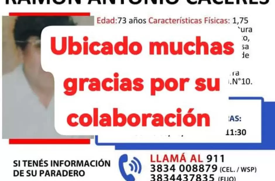 Luego de un arduo trabajo, los uniformados lograron dar con el paradero de esta persona, que se encuentra en buen estado de salud.