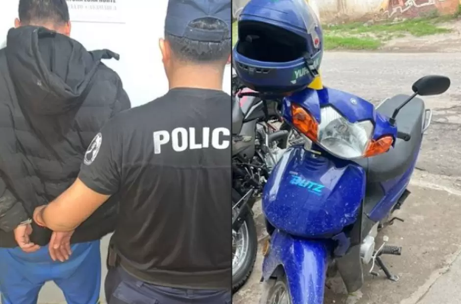 A las 14:45 de la tarde de ayer, a través de Operadores del 905, numerarios de la Comisaría de San Antonio tomaron conocimiento que un sujeto habría cometido un arrebato, por lo que de inmediato llevaron a cabo recorridos y con las características brindadas, en la calle Sargento Cabral S/N°, de esa localidad de Fray Mamerto Esquiú, observaron que una persona del sexo masculino circulaba en una motocicleta Motomel Blitz 110 cc., de color azul.