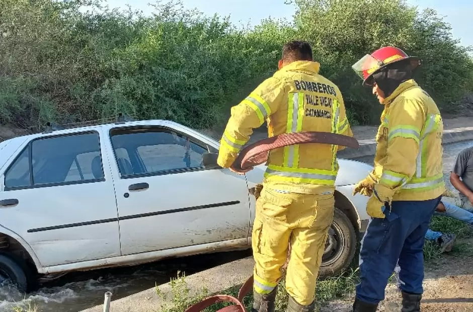 Las fuentes policiales informan que un automóvil Ford Fiesta, conducido por un hombre identificado como Gerónimo Herrera, por causas a determinar, terminó atascado en el Canal de la Muerte, en la mencionada localidad, Miembros del cuerpo de Bomberos de Valle Viejo y efectivos policiales acudieron al lugar y están haciendo labores de rescate para sacara el vehículo del canal. El conductor del Ford Fiesta logró salir ileso y solo tiene que lamentar daños materiales en el rodado.
