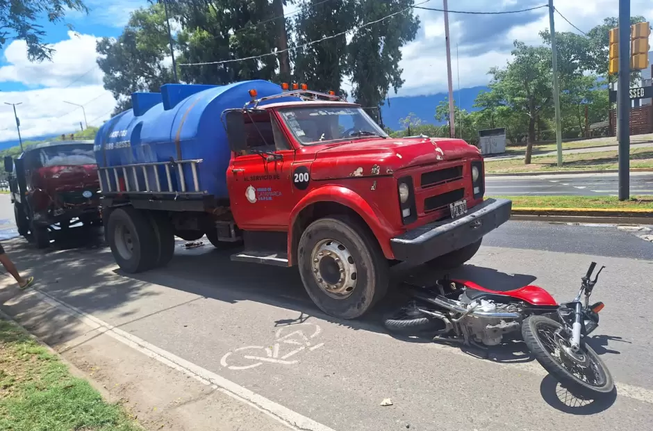 El siniestro fue causado debido a que el camión de la empresa de agua fue colisionado a su vez por otro camión contratado por Aguas de Catamarca cuando este, al igual que el motociclista, aguardaban el paso del semáforo.