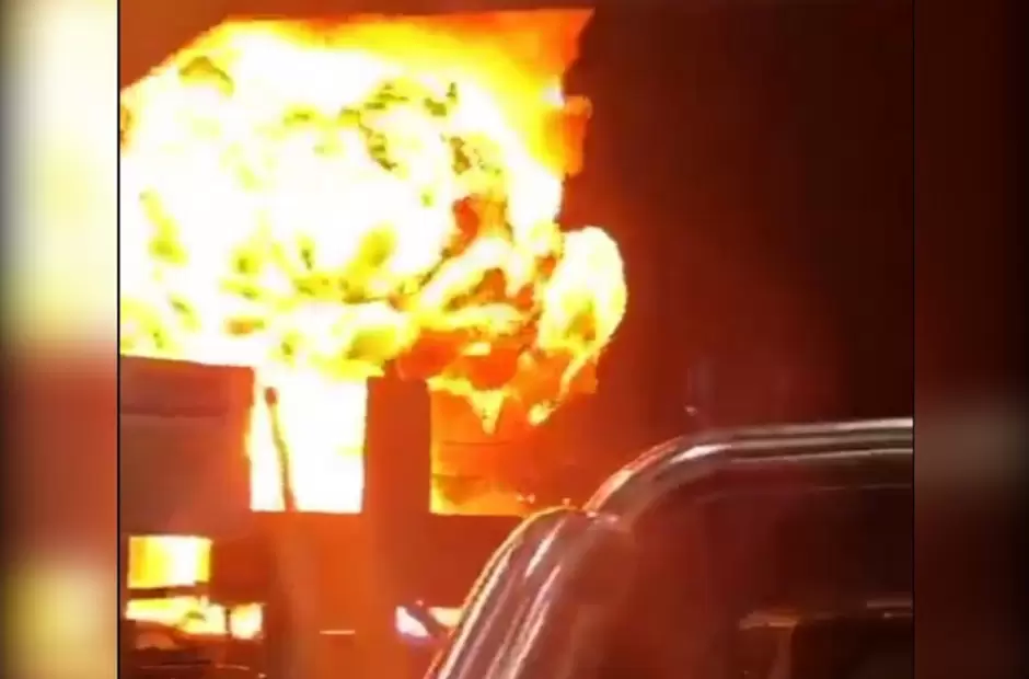 Tres camiones y dos autos chocaron al norte y se prendieron fuego, altura fábrica de pinturas Alba. Uno de los vehículos transportaba aerosoles y provocó un incendio con explosiones